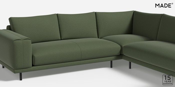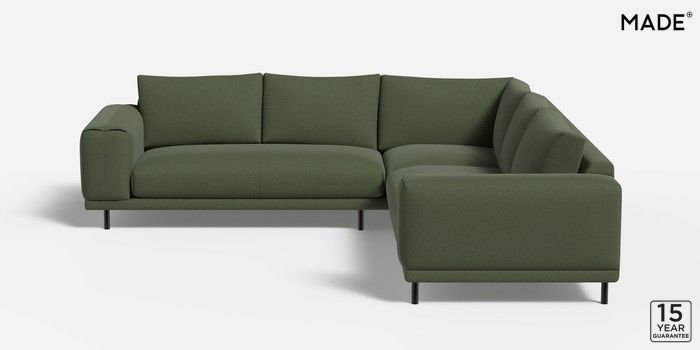 6.12.1 Buy Odin by Made Medium Corner Sofa - Universal Made Weave Dark Moss Green Skinny - Black from the Next UK online shop Click here to use our accessible website