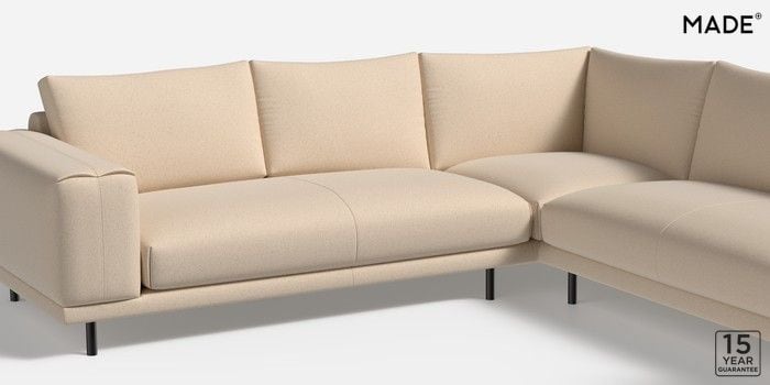 6.12.1 Buy Odin by Made Medium Corner Sofa - Universal Made Weave Light Stone Natural Skinny - Black from the Next UK online shop Click here to use our accessible website