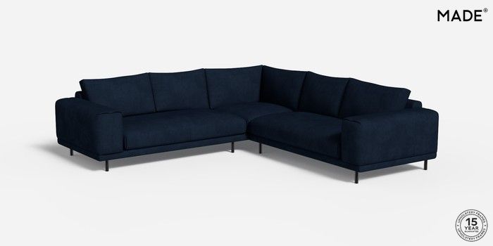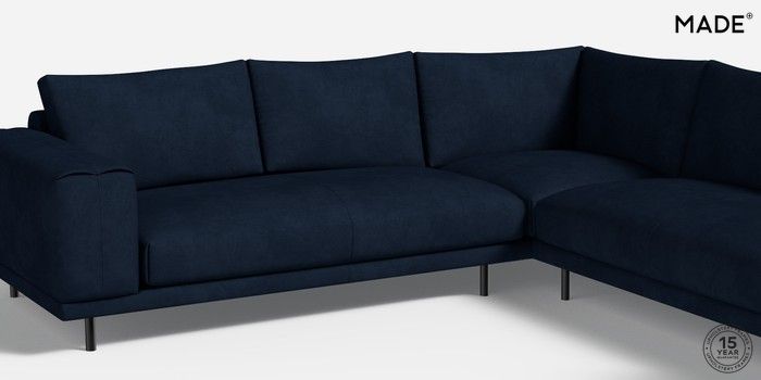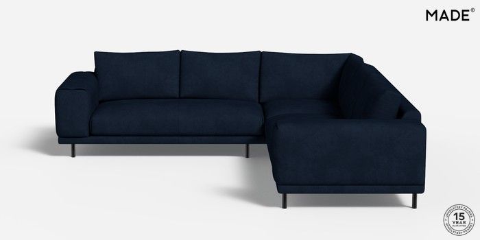 6.12.1 Buy Odin by Made Medium Corner Sofa - Universal Matt Velvet Easy Clean Dark Navy Blue Skinny - Black from the Next UK online shop Click here to use our accessible website