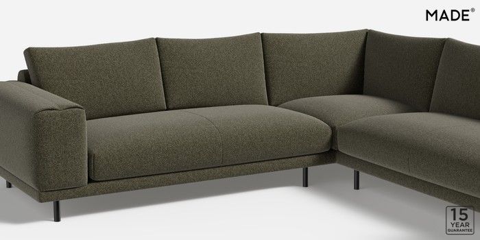 6.12.1 Buy Odin by Made Medium Corner Sofa - Universal Soft Touch Boucle Forest Green Skinny - Black from the Next UK online shop Click here to use our accessible website