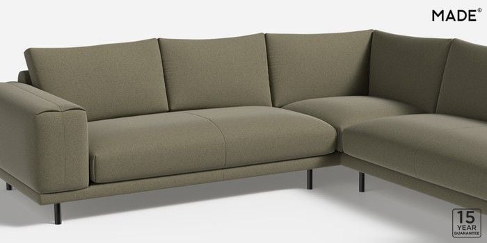 6.12.1 Buy Odin by Made Medium Corner Sofa - Universal Textured Slub Weave Soft Olive Green Skinny - Black from the Next UK online shop Click here to use our accessible website