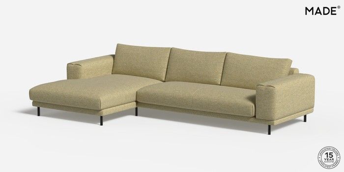 6.12.1 Buy Odin by Made Medium Sofa Chaise - Left Hand Boucle Textured Weave Pale Fir Green Skinny - Black from the Next UK online shop Click here to use our accessible website
