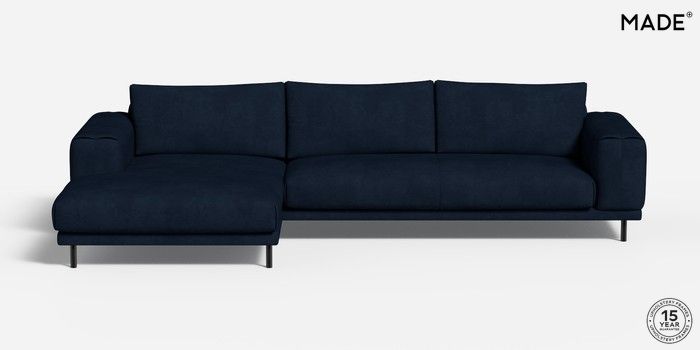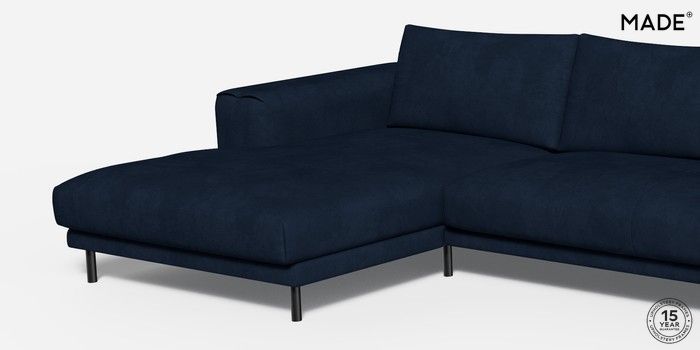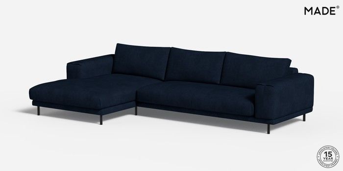 6.12.1 Buy Odin by Made Medium Sofa Chaise - Left Hand Matt Velvet Easy Clean Dark Navy Blue Skinny - Black from the Next UK online shop Click here to use our accessible website