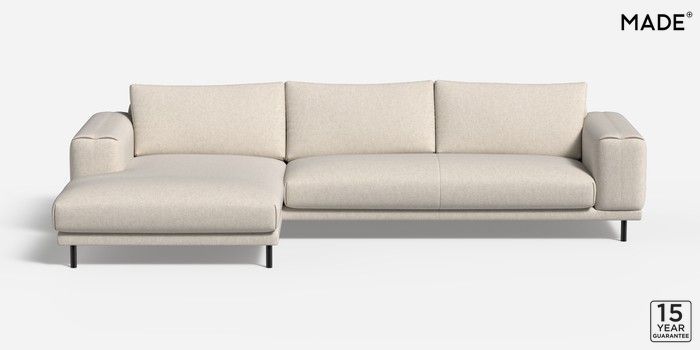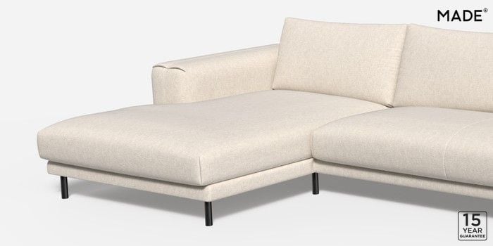 6.12.1 Buy Odin by Made Medium Sofa Chaise - Left Hand Textured Slub Weave Light Natural Skinny - Black from the Next UK online shop Click here to use our accessible website