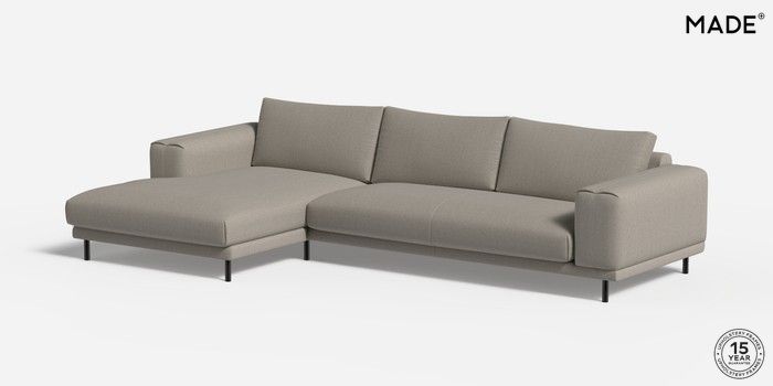 6.12.1 Buy Odin by Made Medium Sofa Chaise - Left Hand Textured Slub Weave Pumice Grey Skinny - Black from the Next UK online shop Click here to use our accessible website