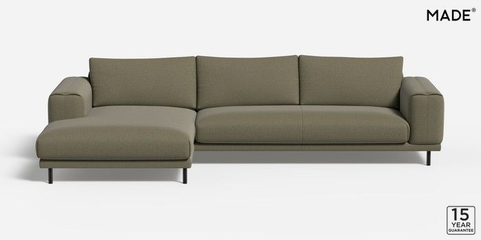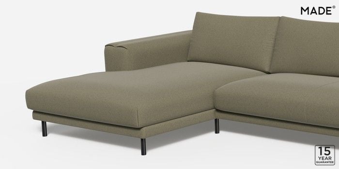 6.12.1 Buy Odin by Made Medium Sofa Chaise - Left Hand Textured Slub Weave Soft Olive Green Skinny - Black from the Next UK online shop Click here to use our accessible website