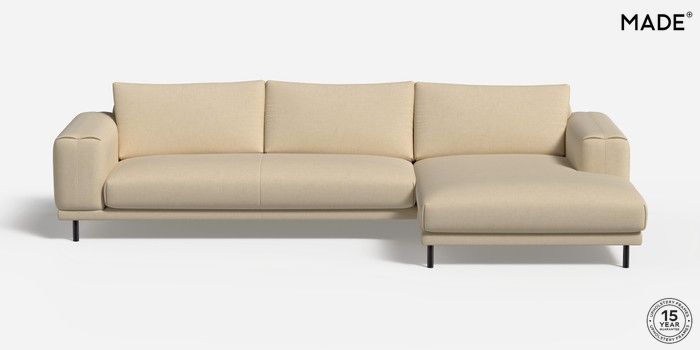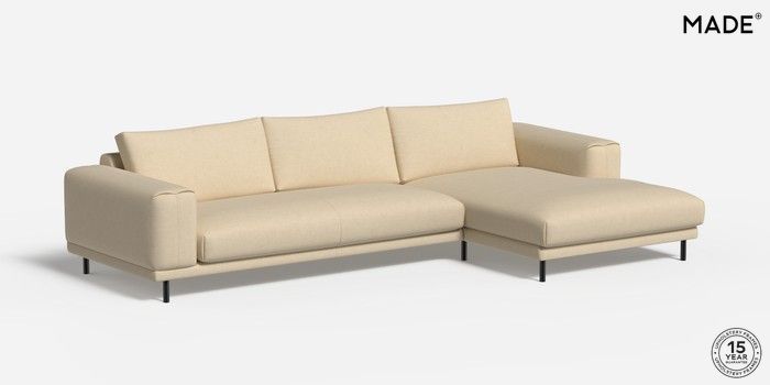 6.12.1 Buy Odin by Made Medium Sofa Chaise - Right Hand Etched Chenille Soft Ecru Natural Skinny - Black from the Next UK online shop Click here to use our accessible website