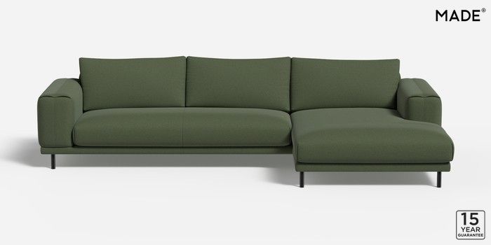 6.12.1 Buy Odin by Made Medium Sofa Chaise - Right Hand Made Weave Dark Moss Green Skinny - Black from the Next UK online shop Click here to use our accessible website