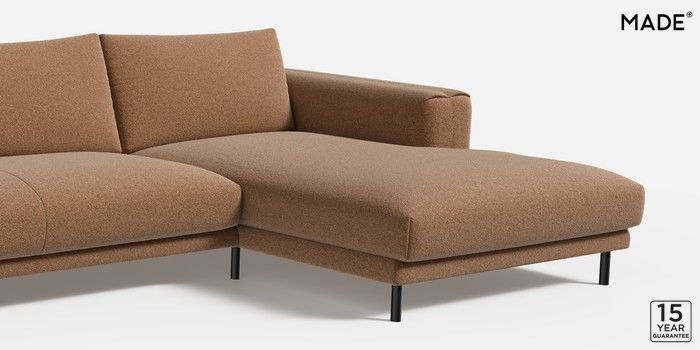 6.12.1 Buy Odin by Made Medium Sofa Chaise - Right Hand Soft Touch Boucle Caramel Natural Skinny - Black from the Next UK online shop Click here to use our accessible website