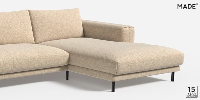 6.12.1 Buy Odin by Made Medium Sofa Chaise - Right Hand Soft Touch Boucle Natural Linen Skinny - Black from the Next UK online shop Click here to use our accessible website