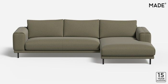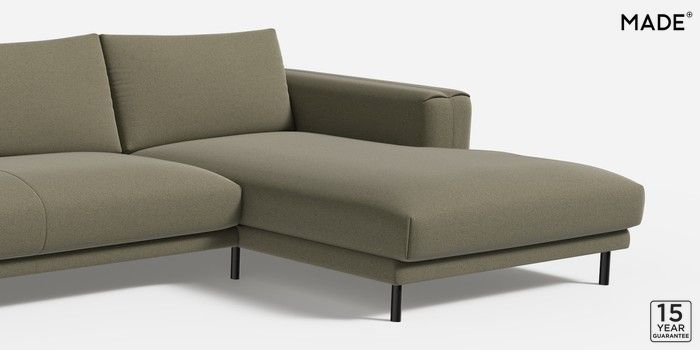 6.12.1 Buy Odin by Made Medium Sofa Chaise - Right Hand Textured Slub Weave Soft Olive Green Skinny - Black from the Next UK online shop Click here to use our accessible website