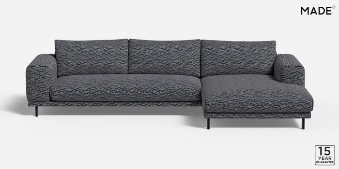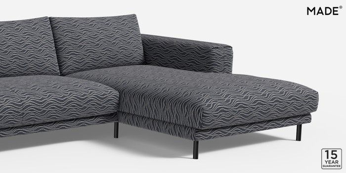 6.12.1 Buy Odin by Made Medium Sofa Chaise - Right Hand Textured Wave Boucle Dark Ink Blue Skinny - Black from the Next UK online shop Click here to use our accessible website