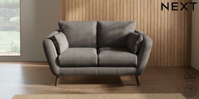 6.12.1 Buy Orlo Leather 2 Seater Small Sofa Antiqued Leather Grey Retro Tapered - Mid from the Next UK online shop Click here to use our accessible website