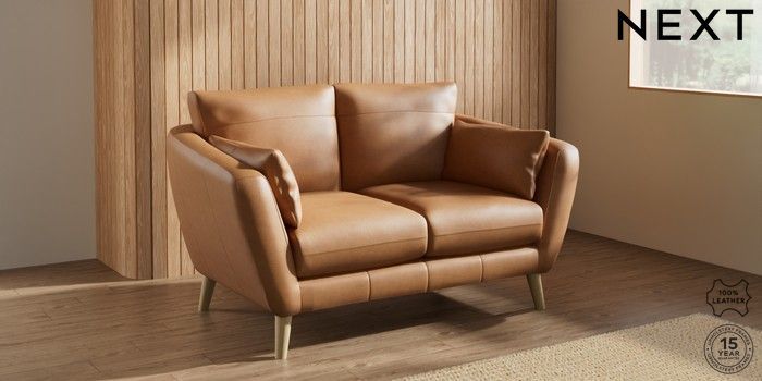 7.0.3 Buy Orlo Leather 2 Seater Small Sofa Antiqued Leather Light Tan Brown Retro Tapered - Light from the Next UK online shop Click here to use our accessible website