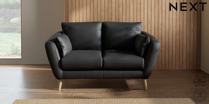 6.12.1 Buy Orlo Leather 2 Seater Small Sofa Columbia Black Retro Tapered - Light from the Next UK online shop Click here to use our accessible website