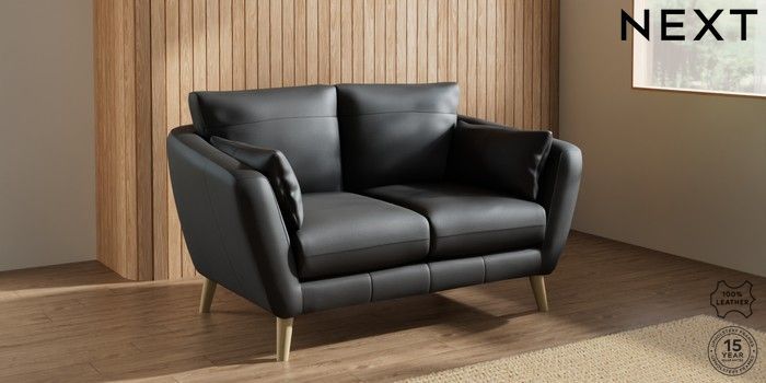 7.0.3 Buy Orlo Leather 2 Seater Small Sofa Columbia Black Retro Tapered - Light from the Next UK online shop Click here to use our accessible website