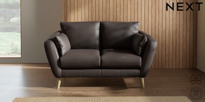 6.12.1 Buy Orlo Leather 2 Seater Small Sofa Columbia Dark Brown Retro Tapered - Light from the Next UK online shop Click here to use our accessible website