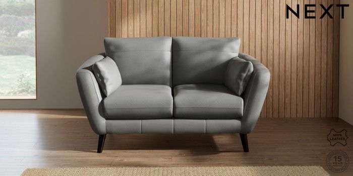 6.12.1 Buy Orlo Leather 2 Seater Small Sofa Columbia French Grey Retro Tapered - Dark from the Next UK online shop Click here to use our accessible website