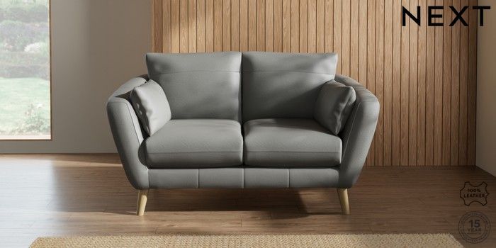 6.12.1 Buy Orlo Leather 2 Seater Small Sofa Columbia French Grey Retro Tapered - Light from the Next UK online shop Click here to use our accessible website