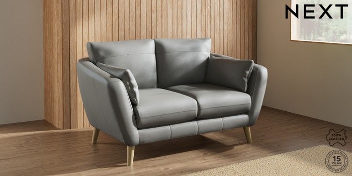 7.0.3 Buy Orlo Leather 2 Seater Small Sofa Columbia French Grey Retro Tapered - Light from the Next UK online shop Click here to use our accessible website