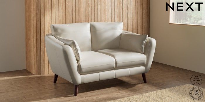 7.0.3 Buy Orlo Leather 2 Seater Small Sofa Columbia Silver Grey Retro Tapered - Dark Brown from the Next UK online shop Click here to use our accessible website