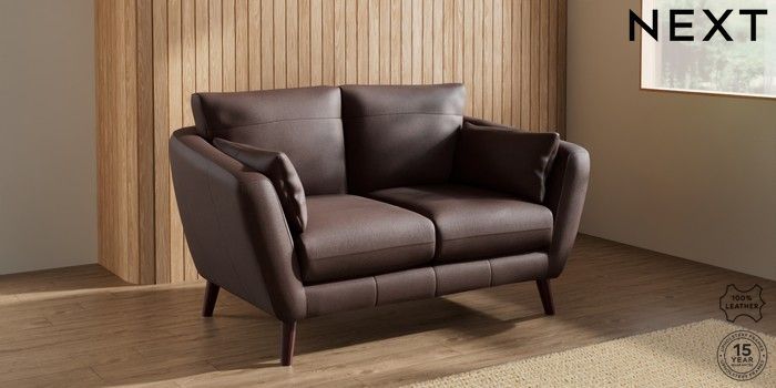 7.0.3 Buy Orlo Leather 2 Seater Small Sofa Rustic Leather Dark Brown Retro Tapered - Dark Brown from the Next UK online shop Click here to use our accessible website