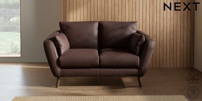 6.12.1 Buy Orlo Leather 2 Seater Small Sofa Rustic Leather Dark Brown Retro Tapered - Mid from the Next UK online shop Click here to use our accessible website