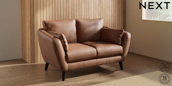 7.0.3 Buy Orlo Leather 2 Seater Small Sofa Rustic Leather Light Brown Retro Tapered - Dark from the Next UK online shop Click here to use our accessible website