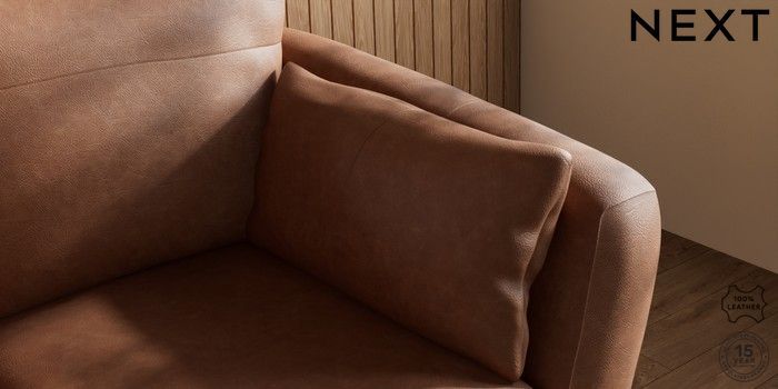 7.0.3 Buy Orlo Leather 2 Seater Small Sofa Rustic Leather Light Brown Retro Tapered - Dark Brown from the Next UK online shop Click here to use our accessible website