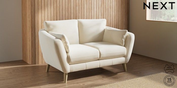 7.0.3 Buy Orlo Leather 2 Seater Small Sofa Turin Leather Cream Retro Tapered - Light from the Next UK online shop Click here to use our accessible website