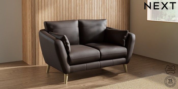 7.0.3 Buy Orlo Leather 2 Seater Small Sofa Turin Leather Dark Brown Retro Tapered - Light from the Next UK online shop Click here to use our accessible website