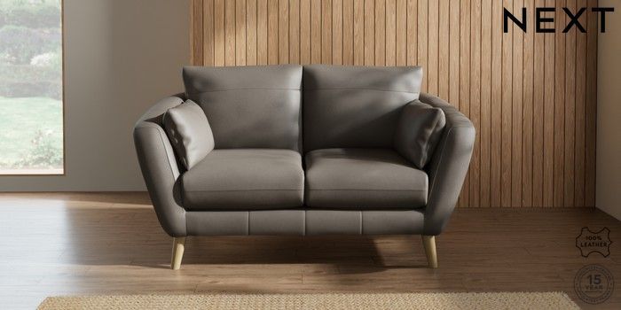 6.12.1 Buy Orlo Leather 2 Seater Small Sofa Turin Leather French Grey Retro Tapered - Light from the Next UK online shop Click here to use our accessible website