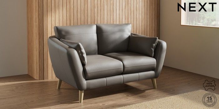 7.0.3 Buy Orlo Leather 2 Seater Small Sofa Turin Leather French Grey Retro Tapered - Light from the Next UK online shop Click here to use our accessible website