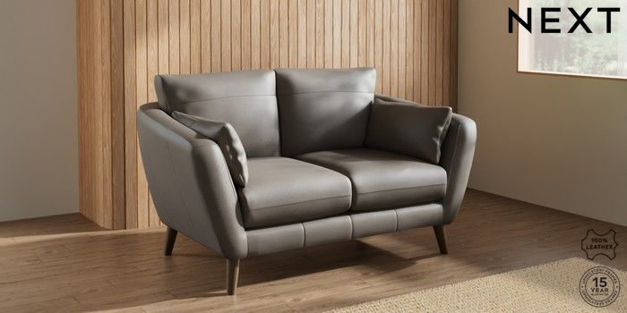 7.0.3 Buy Orlo Leather 2 Seater Small Sofa Turin Leather French Grey Retro Tapered - Mid from the Next UK online shop Click here to use our accessible website
