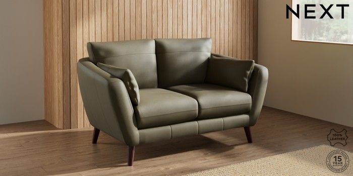 7.0.3 Buy Orlo Leather 2 Seater Small Sofa Turin Leather Moss Green Retro Tapered - Dark Brown from the Next UK online shop Click here to use our accessible website