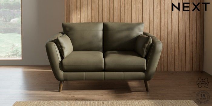 6.12.1 Buy Orlo Leather 2 Seater Small Sofa Turin Leather Moss Green Retro Tapered - Mid from the Next UK online shop Click here to use our accessible website