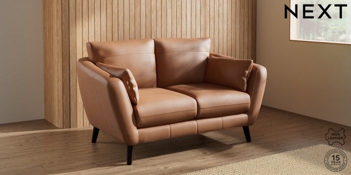 7.0.3 Buy Orlo Leather 2 Seater Small Sofa Turin Leather Tan Brown Retro Tapered - Dark from the Next UK online shop Click here to use our accessible website