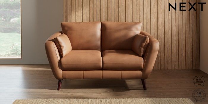 6.12.1 Buy Orlo Leather 2 Seater Small Sofa Turin Leather Tan Brown Retro Tapered - Dark Brown from the Next UK online shop Click here to use our accessible website