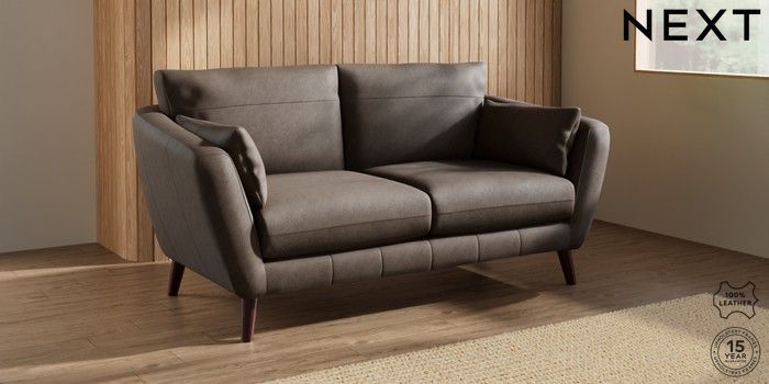 7.0.3 Buy Orlo Leather 3 Seater Small Sofa Antiqued Leather Dark Brown Retro Tapered - Dark Brown from the Next UK online shop Click here to use our accessible website