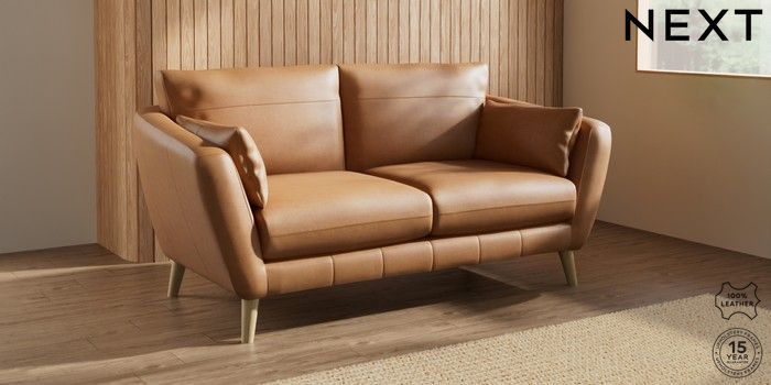 7.0.3 Buy Orlo Leather 3 Seater Small Sofa Antiqued Leather Light Tan Brown Retro Tapered - Light from the Next UK online shop Click here to use our accessible website