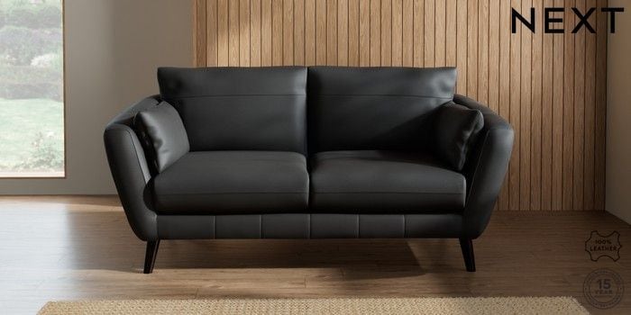 6.12.1 Buy Orlo Leather 3 Seater Small Sofa Columbia Black Retro Tapered - Dark from the Next UK online shop Click here to use our accessible website