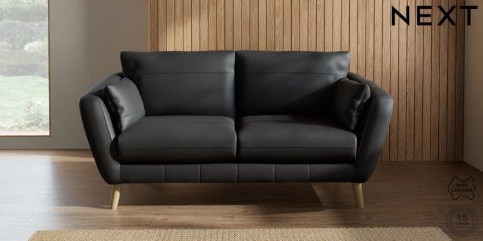 6.12.1 Buy Orlo Leather 3 Seater Small Sofa Columbia Black Retro Tapered - Light from the Next UK online shop Click here to use our accessible website