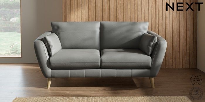 6.12.1 Buy Orlo Leather 3 Seater Small Sofa Columbia French Grey Retro Tapered - Light from the Next UK online shop Click here to use our accessible website