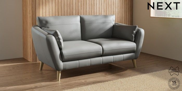 7.0.3 Buy Orlo Leather 3 Seater Small Sofa Columbia French Grey Retro Tapered - Light from the Next UK online shop Click here to use our accessible website