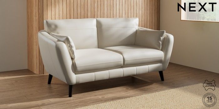 7.0.3 Buy Orlo Leather 3 Seater Small Sofa Columbia Silver Grey Retro Tapered - Dark from the Next UK online shop Click here to use our accessible website