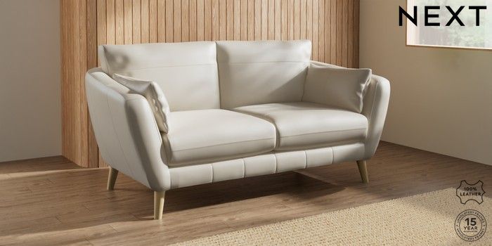7.0.3 Buy Orlo Leather 3 Seater Small Sofa Columbia Silver Grey Retro Tapered - Light from the Next UK online shop Click here to use our accessible website