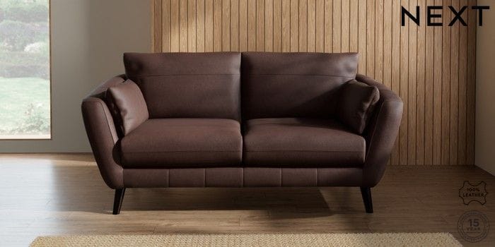 6.12.1 Buy Orlo Leather 3 Seater Small Sofa Rustic Leather Dark Brown Retro Tapered - Dark from the Next UK online shop Click here to use our accessible website