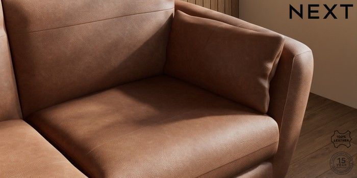 7.0.3 Buy Orlo Leather 3 Seater Small Sofa Rustic Leather Light Brown Retro Tapered - Dark Brown from the Next UK online shop Click here to use our accessible website