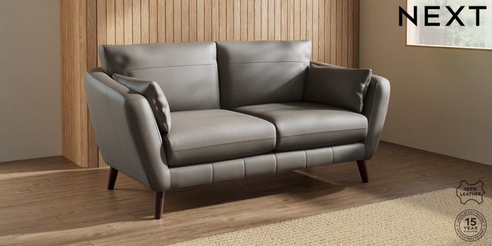 7.0.3 Buy Orlo Leather 3 Seater Small Sofa Turin Leather French Grey Retro Tapered - Dark Brown from the Next UK online shop Click here to use our accessible website