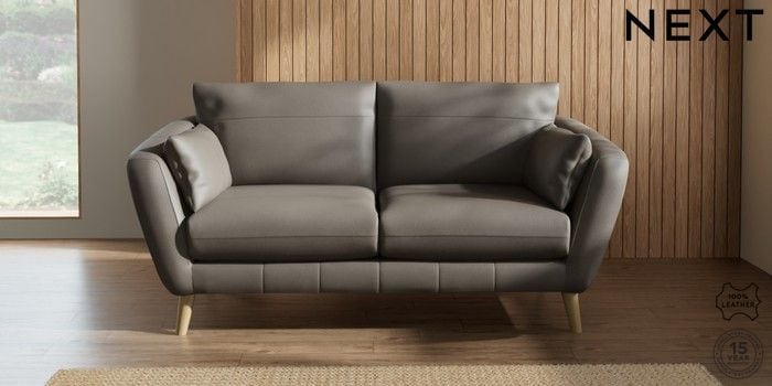 6.12.1 Buy Orlo Leather 3 Seater Small Sofa Turin Leather French Grey Retro Tapered - Light from the Next UK online shop Click here to use our accessible website